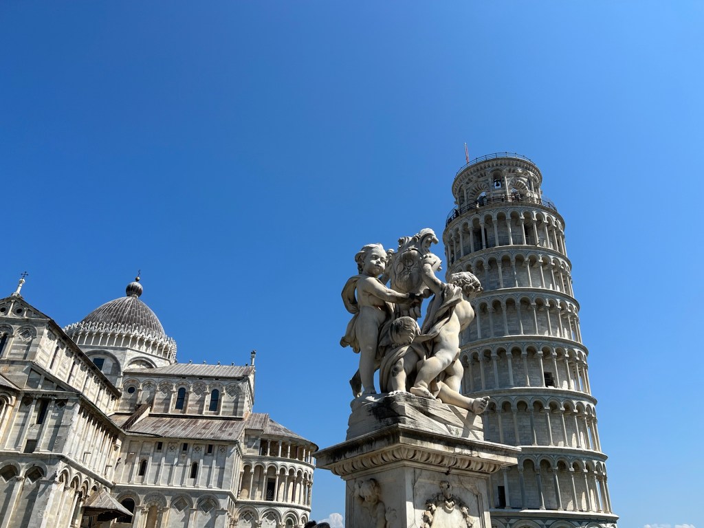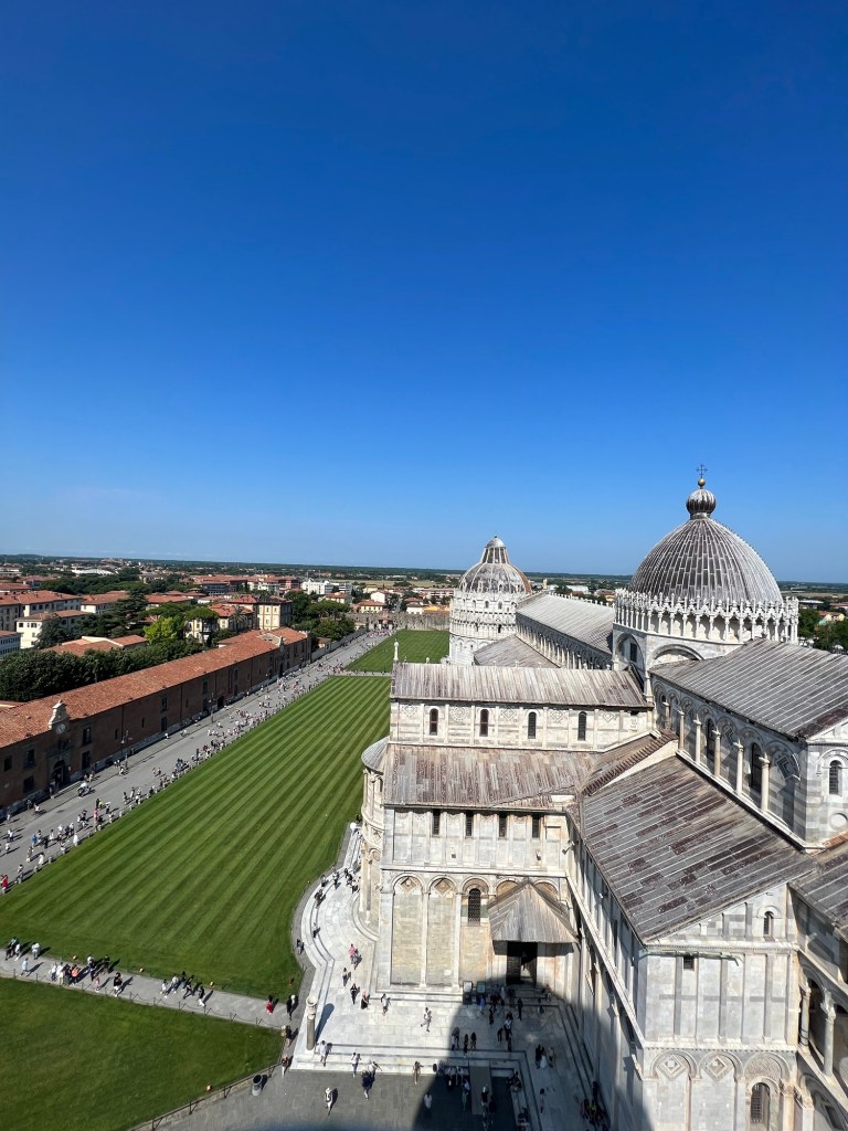 If you are going to climb the Tower of Pisa just know that you are not allowed to bring bags. Our tour guide told us to leave our backpacks on the bus or we would need to check them into the baggage room there. We left our bags on the bus and only brought our fanny packs that fit under our clothes with our money and important documents. We were able to walk right up into the line and others in our group had to go check their bags in the baggage room. They ended up missing their time to climb the tower but we were able to! Tip: plan ahead and don’t bring bags to the Tower of Pisa if you are planning on climbing it. -Kylie