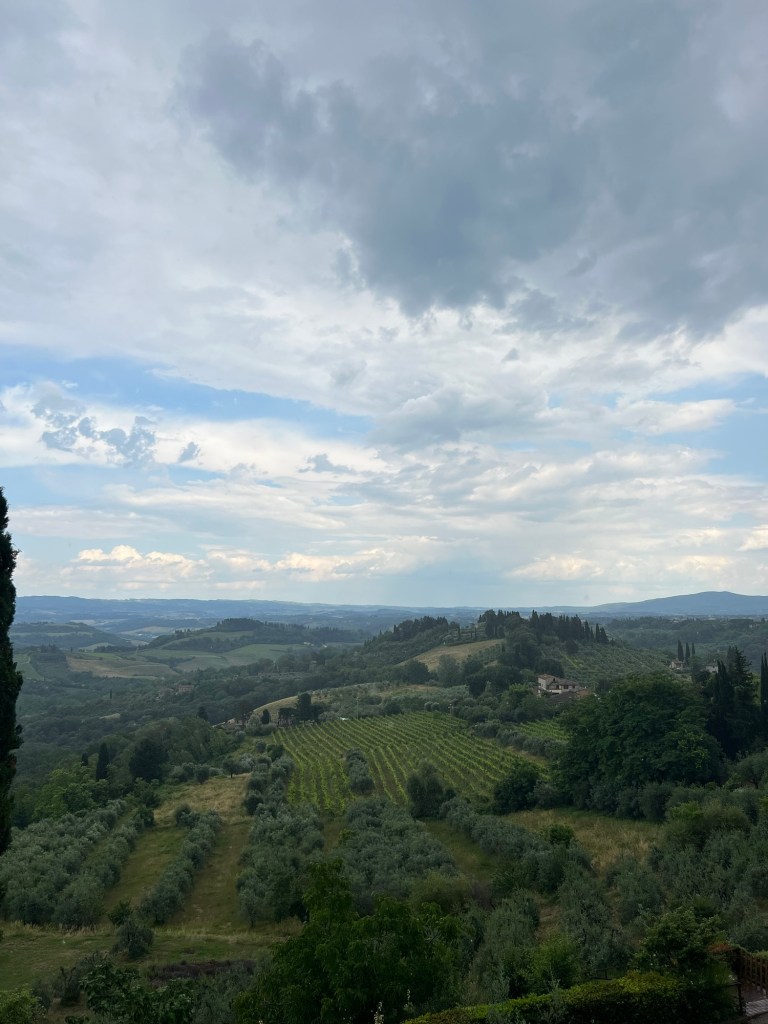 We specifically did a small group wine tasting in the Tuscan countryside and it was a day trip out of Florence. It was a great experience to see the beautiful area, visit wineries and of course try lots of different wine. We went to one winery called Casa Emma in Barberino Tavarnelle. We tried their different wines, extra virgin olive oil and balsamics with cheese and bread. The views were so stunning from this winery. The other winery we went to was just down the road called Fattoria Montecchio and we tried their different wines and had breads with toppings and meats with cheeses. This winery also had breathtaking views. It seemed like you were looking at a picture when you walked out onto the back patio. We were in the Chianti region so if you are in this area drink all the Chianti wine you can! (Or if you go to a restaurant anywhere in the world and they have a Chianti wine from Italy, I recommend trying it). Our favorite winery in all of Italy was the Fattoria Poggio Alloro that I mentioned in San Gimignano.