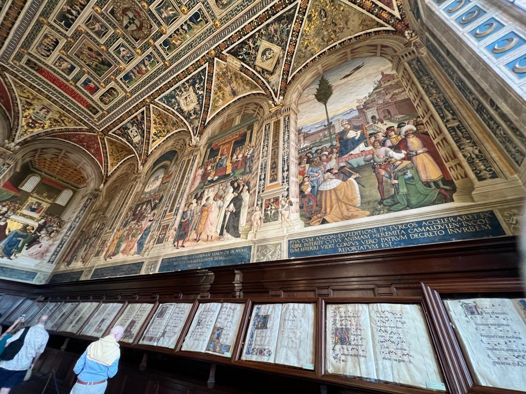 Siena was another stop on our day trip from Florence. Siena was stunning with the architure of the buildings. Our tour guide here was very hard to understand because she had a very thick accent which is a bummer because I would have loved to hear more about the history of Siena. My favorite place here was the Siena Cathedral. It was first constucted in the 1100s and was finished in the 1300s. This was one of my favorite cathedrals we visited in all of Europe. It has breathtaking black and white striped pillars on the inside and has the Piccolomini Library which contains choir books from around the 1400s. I wish we had more time to spend here and I would highly recommend visiting this cathedral!