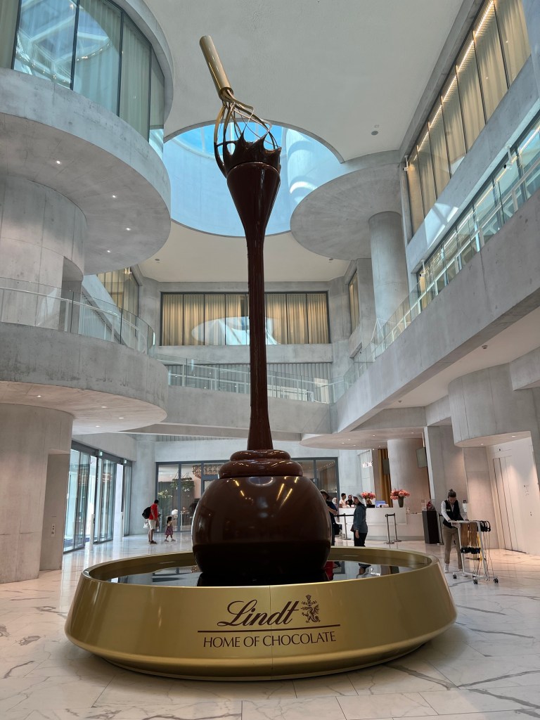We did a lot of day trips out into the country side and to other towns while we were in Zurich but our favorite thing to do while we were there was the Lindt Home of Chocolate Museum. We did the tour and learned about the history of chocolate and how Lindt Chocolate came to be. We got to try so many different flavors and types of chocolate and it is SO much better than the Lindt chocolate we have in the USA. After the tour we ate at their little cafe inside and OMG it was so good! We each got a hot chocolate: amazing! Nic got a warm sandwich and I got a cold sandwich and his was SO much better! I would highly recommend going and ordering a warm sandwich with a hot chocolate of a flavor you like! We purchased our tickets online and way in advance because they do sell out very quickly. In order to get over to the museum we took the train and I just Google which train stop was the closest to the museum and entered it in my ZVV app. This is definitely on our bucket list to experience again and next time we want to take one of the chocolate making classes!