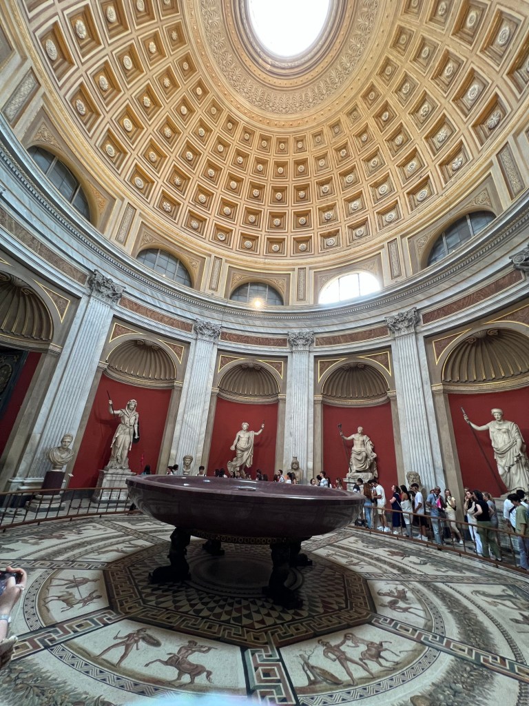 The Sistine Chapel is gorgeous but you are not allowed to take photos while inside and you are not allowed to talk. Michelangelo painted the Sistine Chapel ceiling and The Last Judgment which is on the wall of the chapel. Both are breathtaking. Everyone gathers into the room and you are supposed to be silent and take in the beauty of the paintings and God’s presence. It truly was incredible but what ruined it for me was everyone talking so they kept having to say over the intercom, “Silence, this is a place of God,” in like five different languages. You are also standing shoulder to shoulder with everyone and it is very hot in there. It is definitely worth it to visit at least once but I don’t feel the need to go back.
