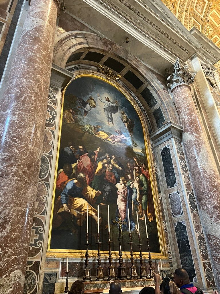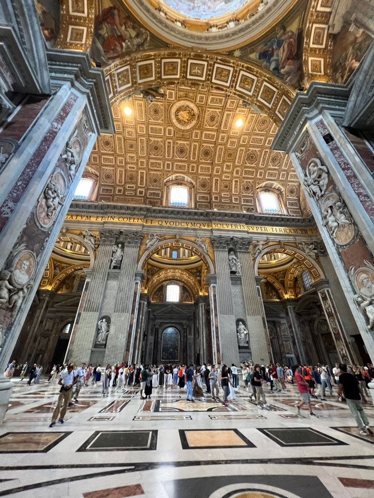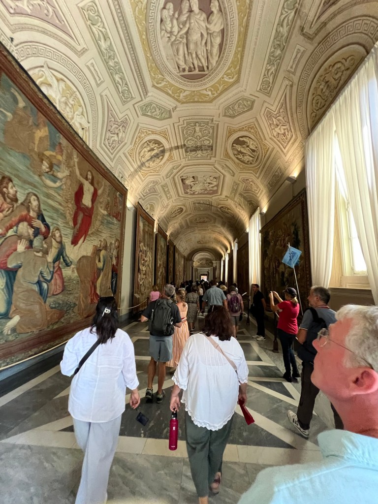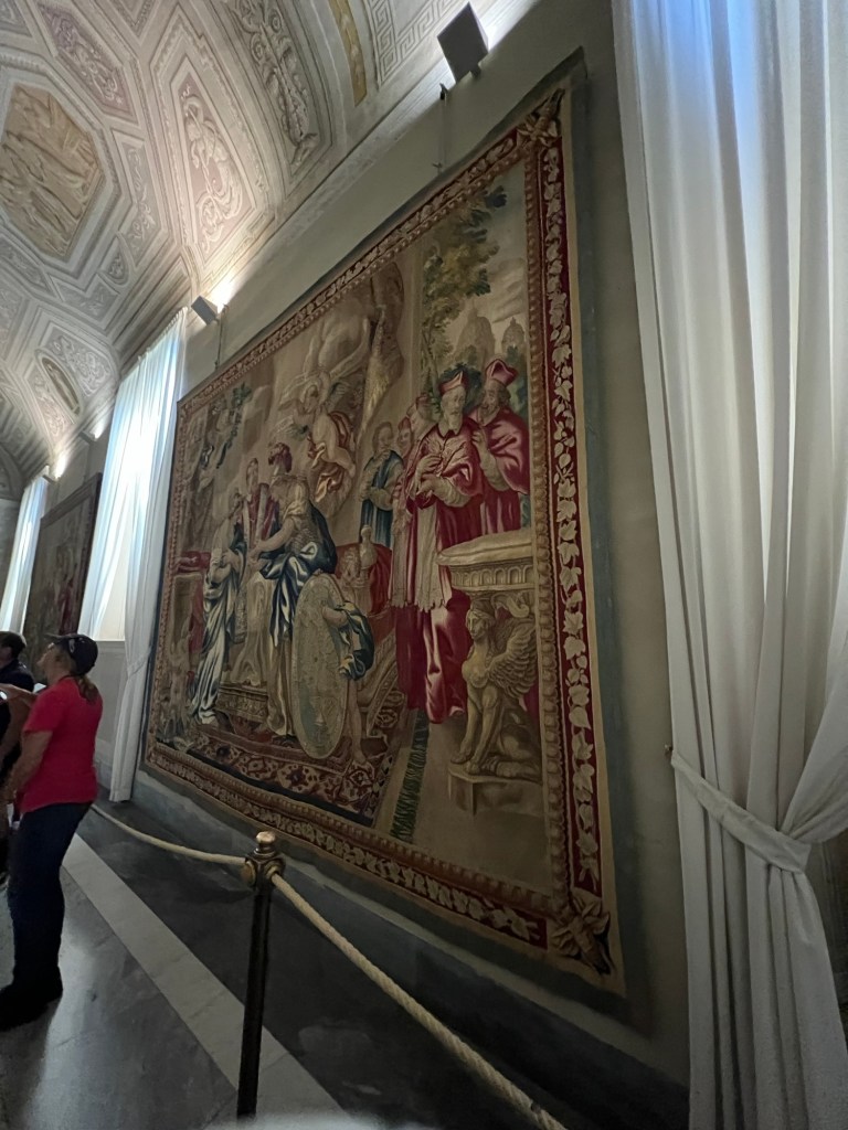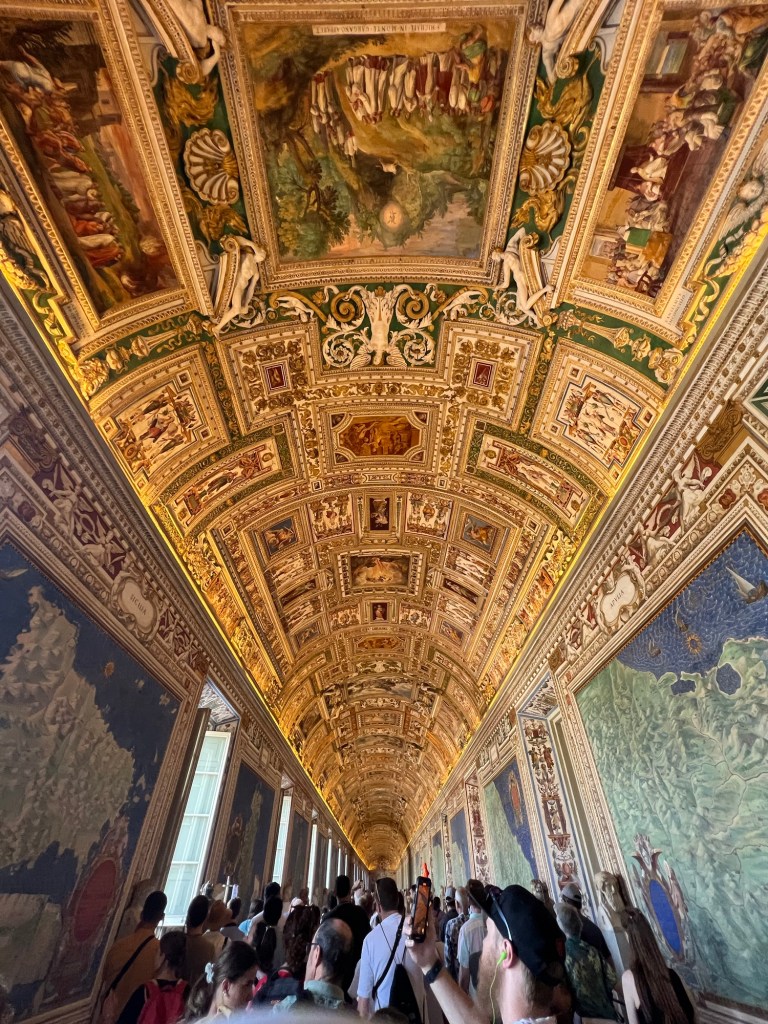 The Vatican Museums are a must to visit at least once in your lifetime! When I say I was blown away at the history in this museum, there truly is nothing like it. The amount of history and artifacts is so overwhelming. You could spend years and years exploring all the items in this museum. Google says there are roughly 70,000 works of art and about only 20,000 of them are on display. The museums were founded by Pope Julius II in the early 1600s. There are rooms after rooms with so many artifacts you can’t possibly take in all of them. We were in a tour group with a headset so we would listen to our tour guide give some history about certain pieces but we missed so much because we had to keep moving (and the place was packed like a can of sardines). But there were rooms full of statues, paintings, maps, murals on the ceilings and hallways full of tapestries. It was so amazing to see so much history and talent. We booked our tour of the Vatican Museum, Sistine Chapel and St. Peter’s Basilica on TripAdvisor in advanced and trust me you do NOT want to wait in the line to purchase your tickets at the door. Side note: We had to take a cab from our hotel in Rome to the Vatican because it was too far to walk and the taxi drivers were crazy! The one that took us back to our hotel was driving with his leg in tight ally ways, going 40mph with parked cars on each side of the road and people crossing in between cars. When he dropped us off he did not take cards (which he told us he did when we got in), so thankfully we had enough cash. It was also double what it cost us to get a ride over there because it was in the evening. So be prepared to pay more for a taxi depending on the times of day that you are visiting.