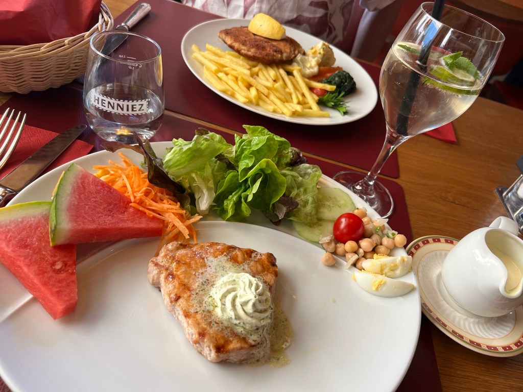 We had lunch while we were in Grindelwald and it was super yummy! We ate at the Challi Bar which is inside the Hotel Kreuz and Post and it’s right next to the train station. It was hot outside so we wanted to sit inside but they do have a small patio with spectacular views on the mountains! Both of our food was very delicious but very expensive. Just keep in mind that wherever you eat you are going to be paying way more than you would back in the city. We also got gelato at a little stand because when in Europe you must eat gelato every chance you get!